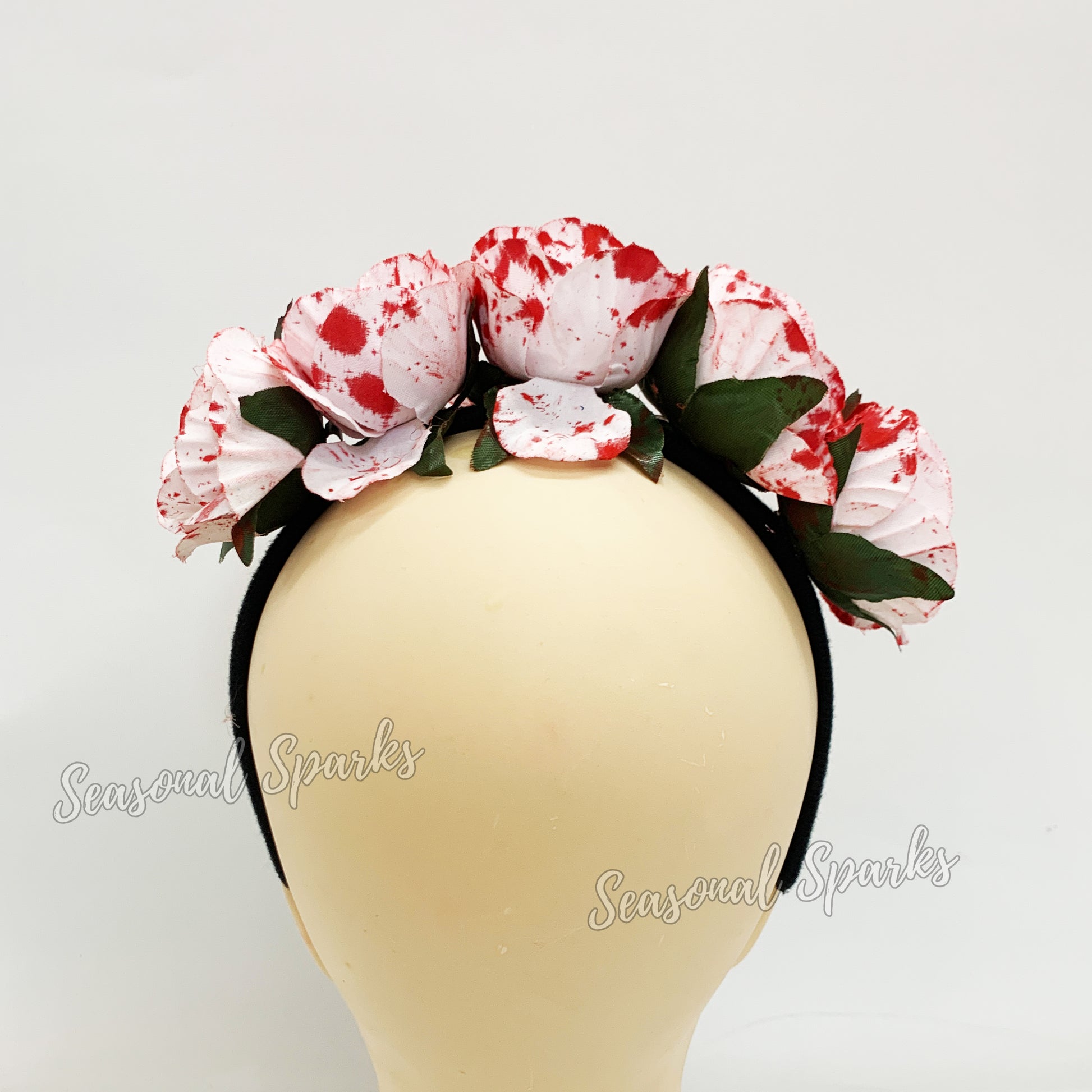 • Package includes 1x a bloody queen satin sash, 1x a flower headband and 2x white bloody gloves