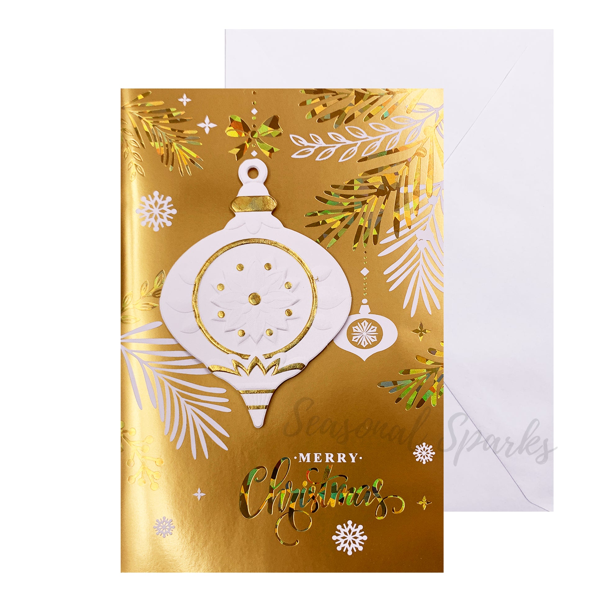 Shining 3D foil accents of this Christmas special cards add a touch of elegance and sophistication to the design. The card also include a message of holiday cheer “ Merry Christmas and a Happy New Year”.