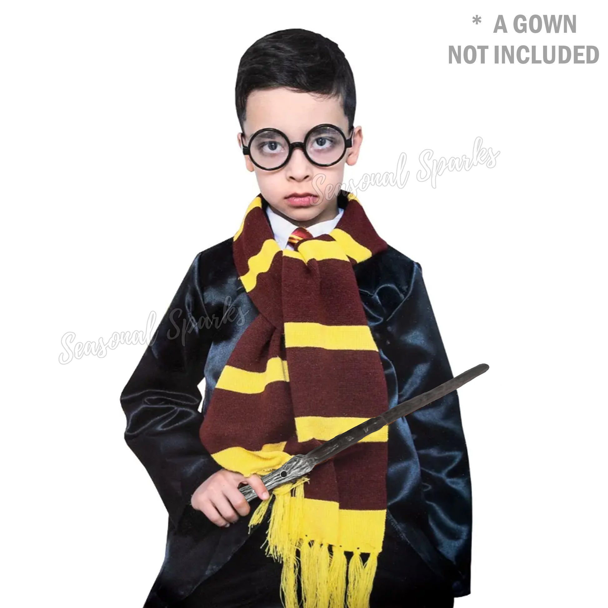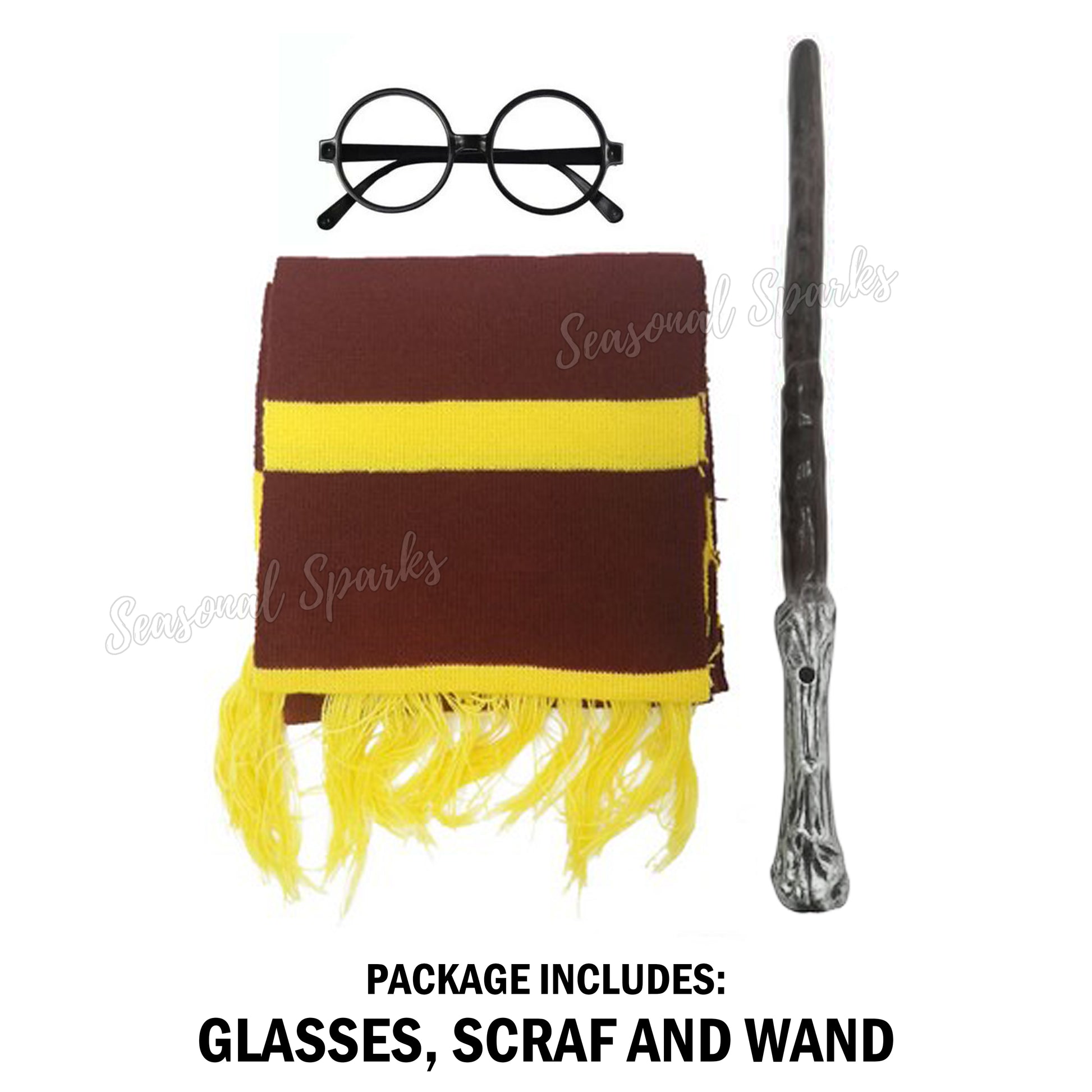• Package includes 1x Scarf. 1x Wand, and 1x Glasses