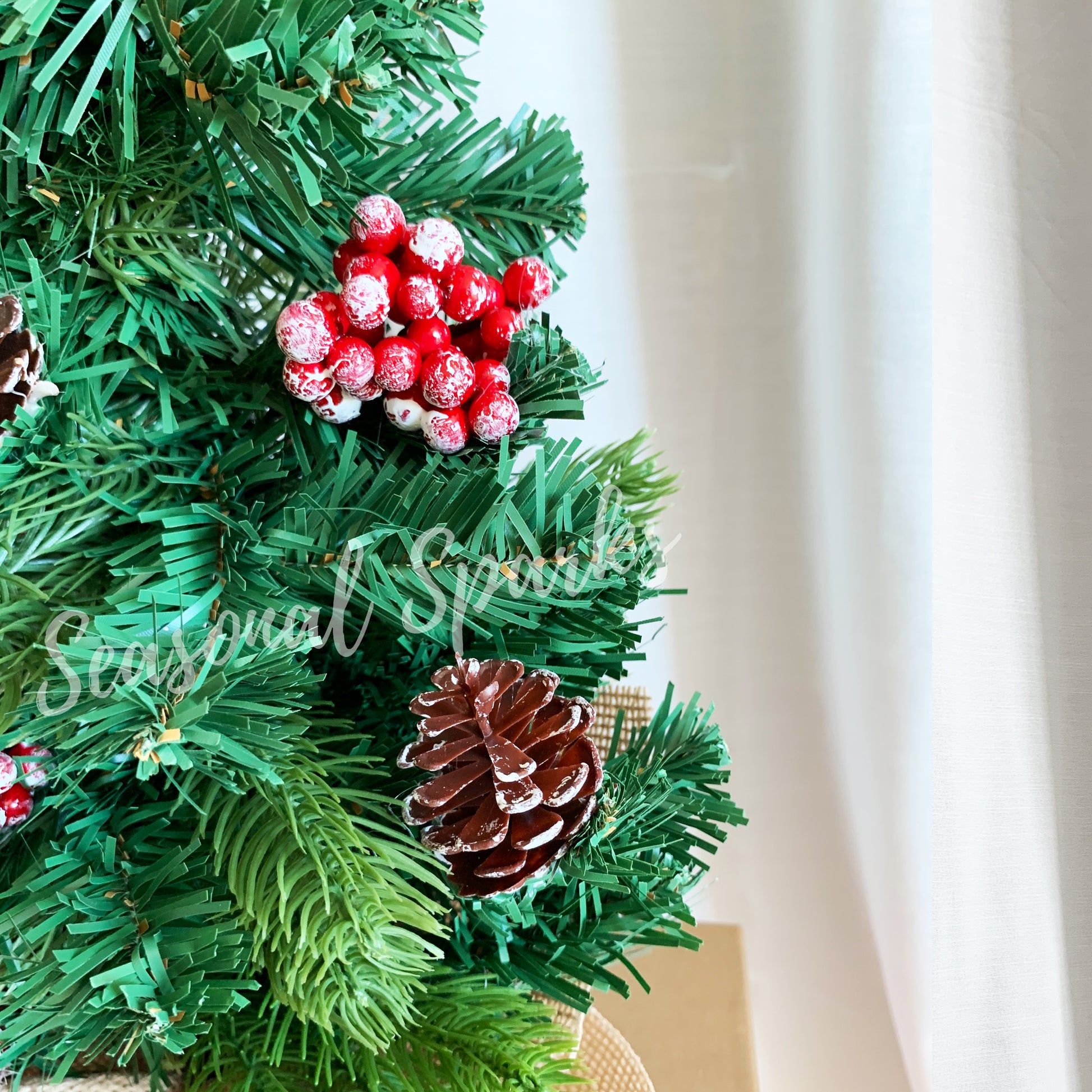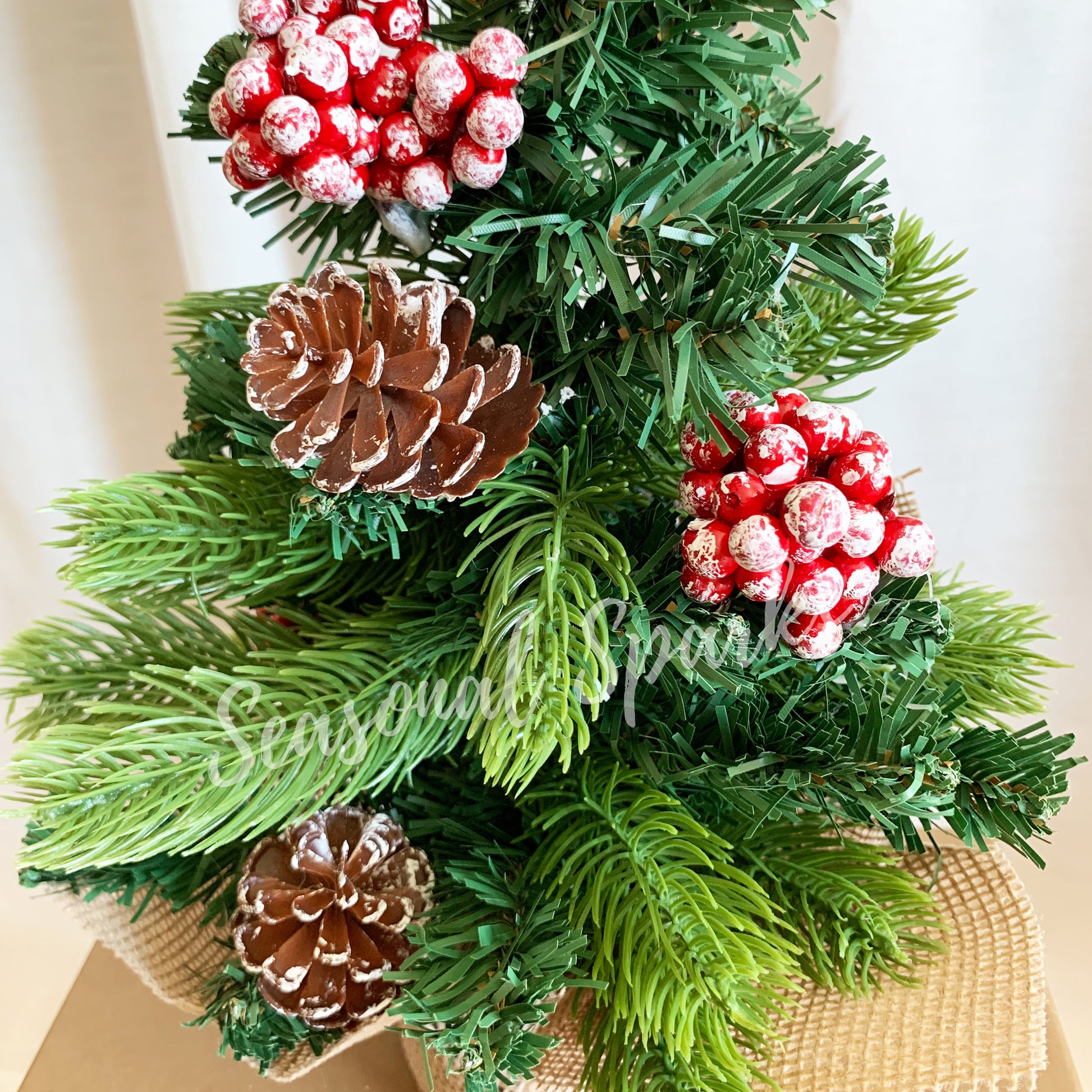 • Natural 2 colours of plastic leaves with frosted holly berries and pines